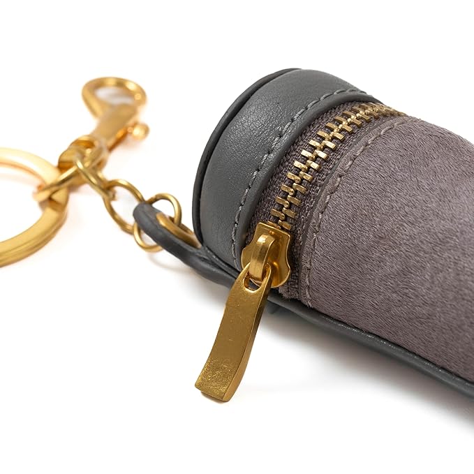 Cackatoo Genuine Leather Horsehair Lipstick Case with Keychain - Portable Travel Organizer for Lipstick and Chapstick - Stylish Key Chain Accessory for Women (Grey/Grey)