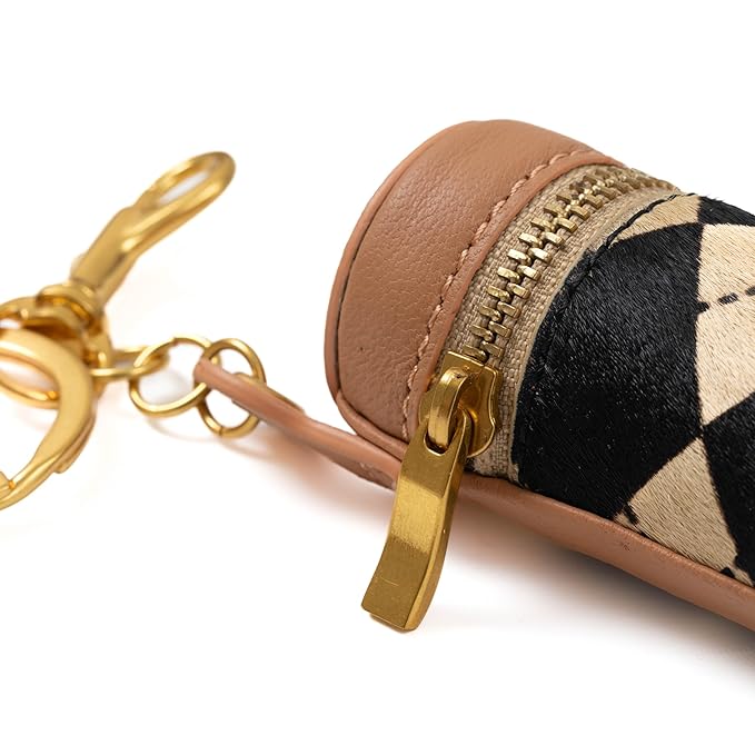Cackatoo Genuine Leather Horsehair Lipstick Case with Keychain - Portable Travel Organizer for Lipstick and Chapstick - Stylish Key Chain Accessory for Women (Checkered/Apricot)