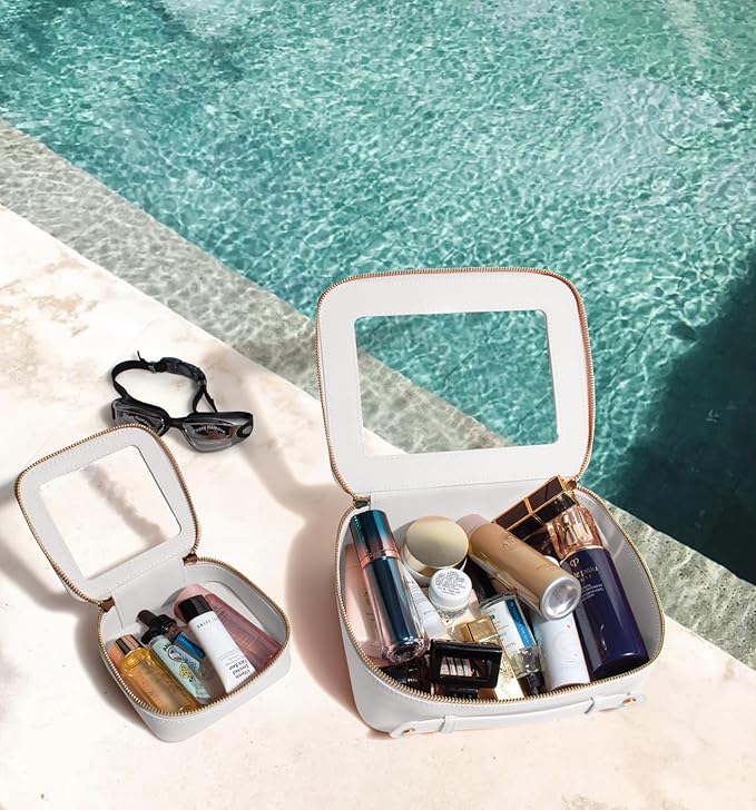 - ✈️WATERPROOF & MULTI-FUNCTION:Our cosmetic organizer is roomy to store your make-up foundation, brushes, skincare routine or other little items like art pencils, cables and chargers. Simply wipe all surfaces with a damp cloth or wet tissue to keep the pouch bag clean.
