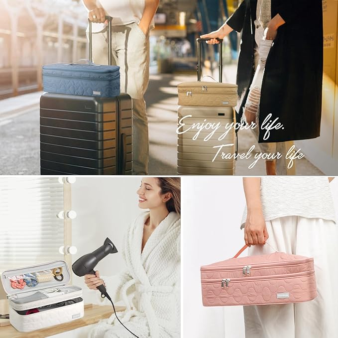 - 【High-Quality Materials】Our Travel Carrying Case incorporates advanced zipper technology, ensuring a seamlessly durable user experience. The exterior radiates sophistication with its premium quilted cotton, offering a touch of luxury and an additional layer of protection for your styling essentials. Inside, the premium nylon lining adds elasticity.