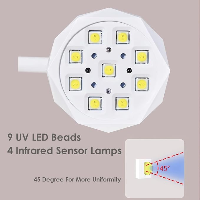 - 360Β° Rotatable Design: 360 degree flexible adjustment, single finger control with ease.This fast-drying led nail lamp can be adjusted to any angle which will allow you to curing your nails in any position as you want, ideal for nail art design.