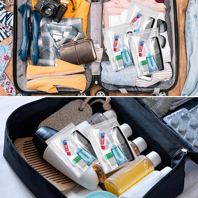 - Complete and Convenient 60 Bulk Basic Toiletry Kits: the package includes 60 kits of travel toiletry kit; Each set is pre packed in a clear zipper bag, comprising a toothbrush, a toothpaste, a comb, a shampoo, and a bar of soap; This extensive arrangement makes this offering convenient, whether you wish to utilize it for personal use or for charitable distribution