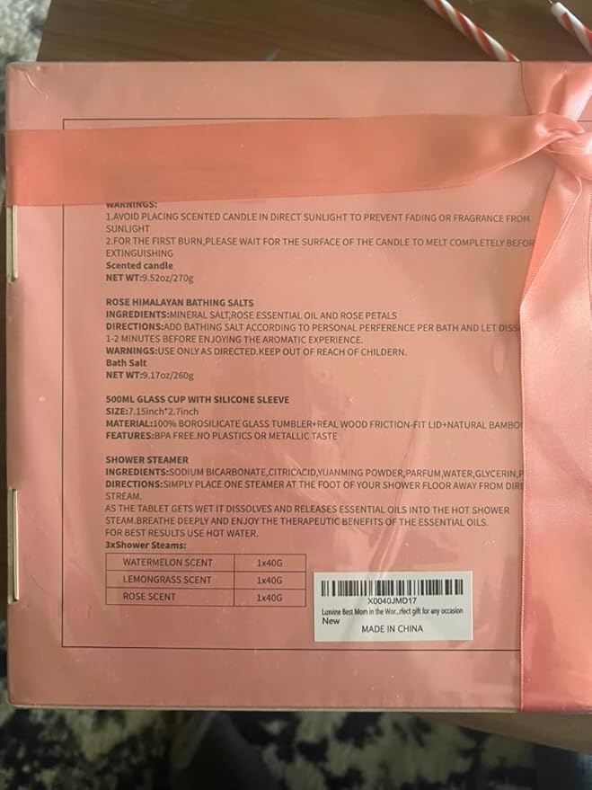 - Complete Gift Box: The mom birthday gifts from the daughter come in a wonderful set with all the accessories that will make your mother happy: 1 x silicone tumbler with straw, 1 x layered bath salts, 3 x shower steamers, 1 x flower candle, 1 x flower postcard, all packed with love in a matching gift box!