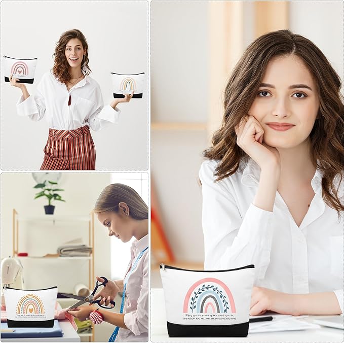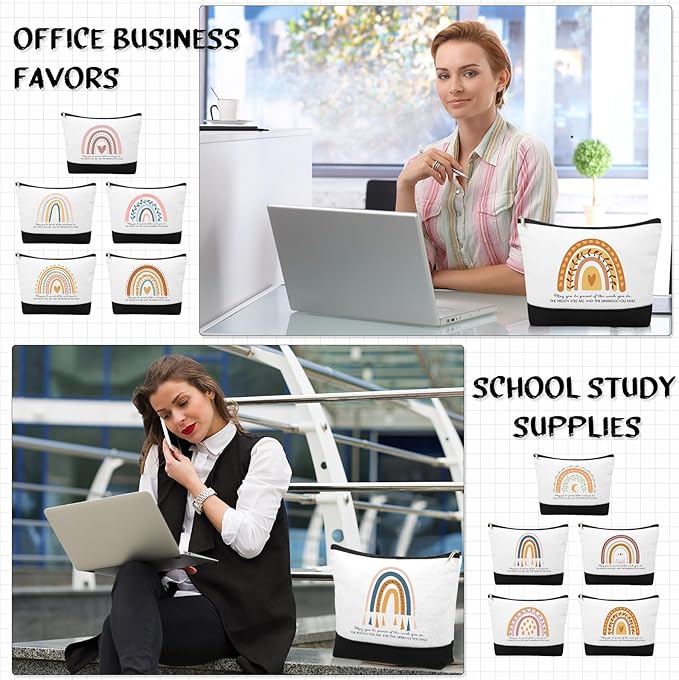 Sieral 30 Pcs Rainbow Canvas Makeup Bags Bulk Employee Appreciation Gifts Graduation Inspirational Cosmetic Bags Thank You Gifts for Teacher Secretary Coworker Volunteer Nurse(Vibrant)