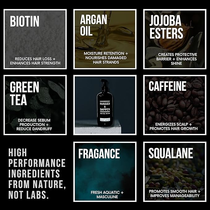 RUGGED & DAPPER 2-in-1 Mens Shampoo and Conditioner - Biotin Hair Thickening Shampoo for Men - SLS-free and Paraben-Free