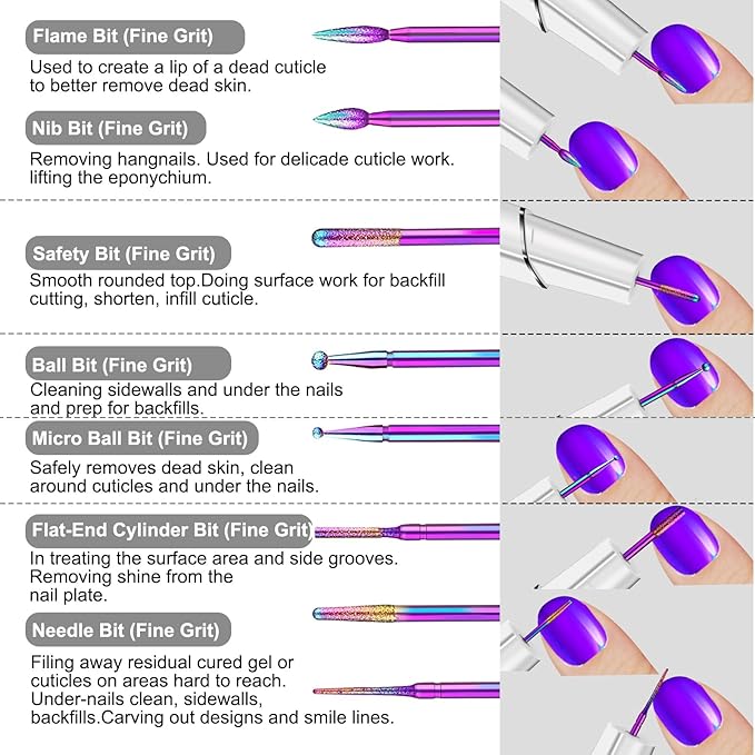 - One Kit for Beginners and Professionals: Our 30pcs nail drill bits are made by different materials. It perfectly fits for any nail art work like grinding, sharpening, carving, polishing, smoothing and cuticles removal, removing acrylic nails. Built to meet all needs for both beginners and professionals.