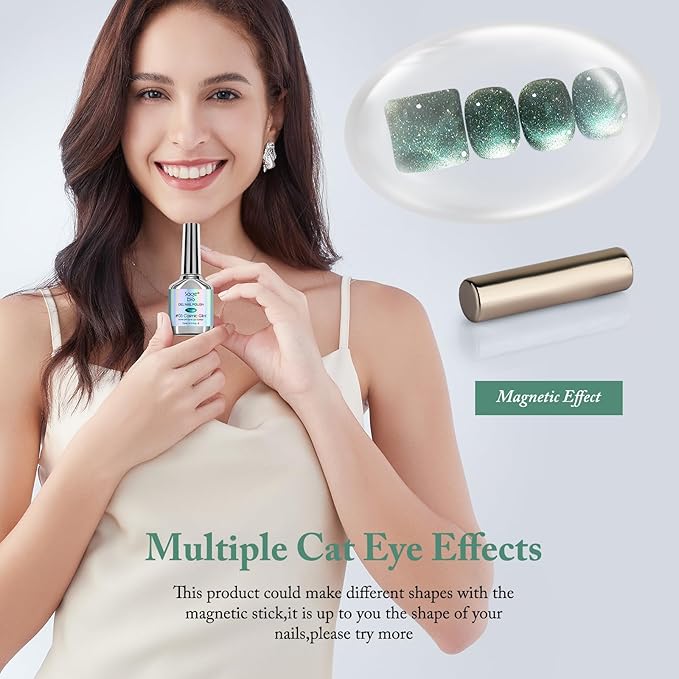 - Easy Application for Salon-Quality Results: Our gel polish glides on smoothly, ensuring even coverage and a high-gloss finish. The included magnet stick allows you to effortlessly create mesmerizing 3D cat eye effects at home.