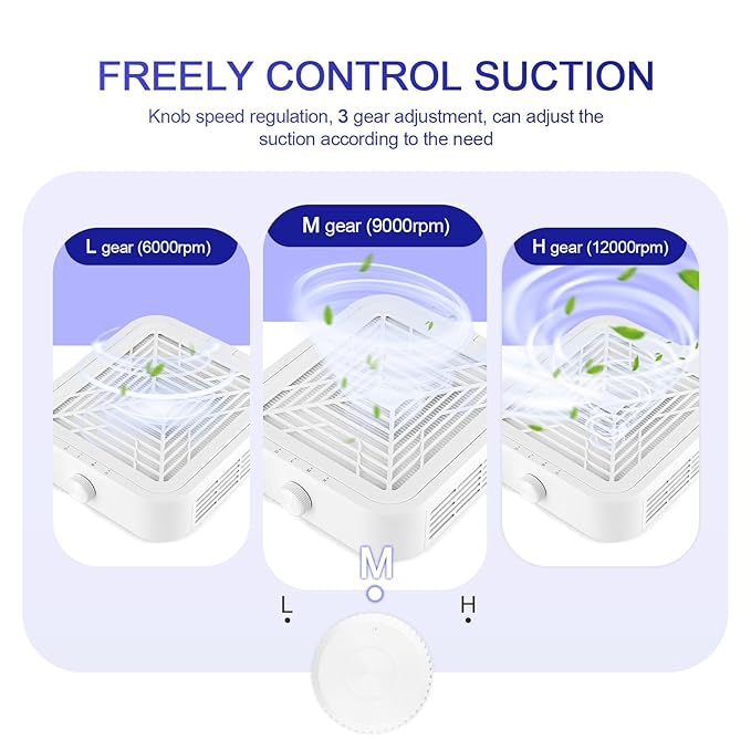 - Easy to Use: The dust Cleaner for nails has controllable filter fan. Reusable and removable. This nail salon dust collector is definitely a must-have for nail salon. Your customers will enjoy a high-quality service from you. Be professional but be simple. Not only for manicure shop, but at home you can have a comfortable atmosphere for nail salon
