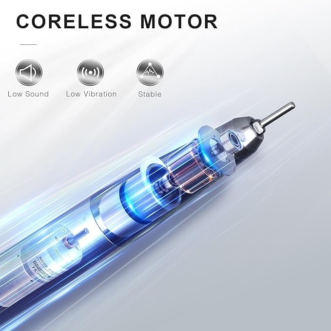 - 【Coreless Motor-Low Noise, Low Vibration, High Stable 】 : Coreless motor, which is between brushless motor and carbon brush, has the characteristics of quiet noise, smooth grinding and median life.
