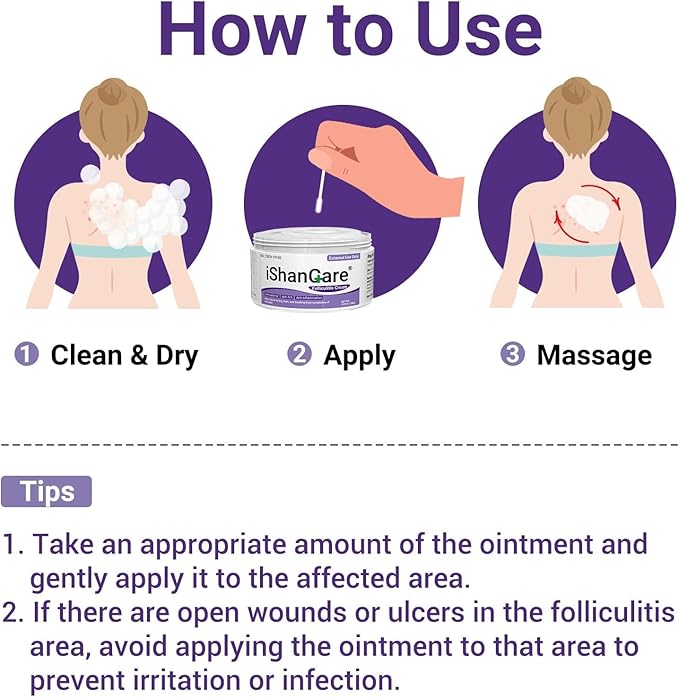 - 【Fast Absorption】iShanCare cream for folliculitis is refreshing and non-greasy that absorbs quickly into the skin, leaving it feeling soft and smooth without any residue. Using our folliculitis cream twice a day, you will get unexpected results within one week.