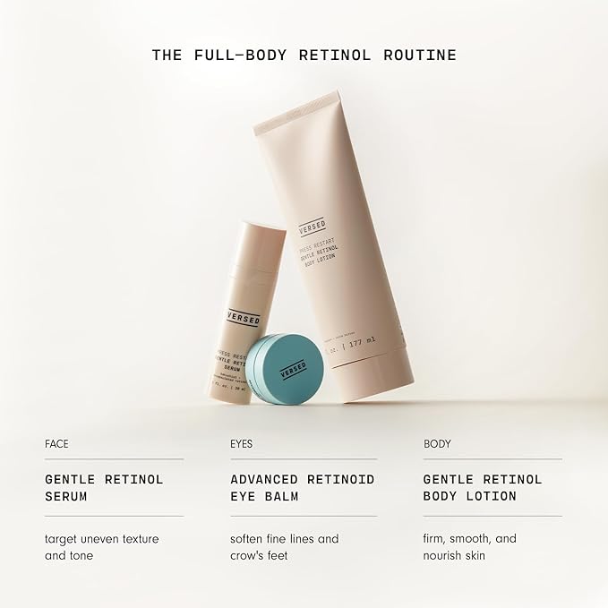 Versed Press Restart Retinol Body Lotion, 2 Pack - Skin Firming Lotion with Cocoa Butter, Squalane & Vitamin E - Lightweight All-Over Body Moisturizer for Aging Dry Skin (6 Oz Each, 2 Products)