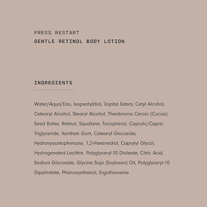 - Retinol Body Lotion - With pure retinol, nourishing cocoa butter, and moisture-replenishing squalane, this retinol body lotion repairs more than dryness. It helps firm skin, smooth texture and brighten dullness.