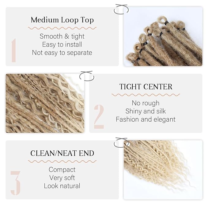 - 【Material】100% handmade quality synthetic fiber light brown to blonde dreadlock extensions, 0.6 cm wide, easy to install. Looks like human hair.