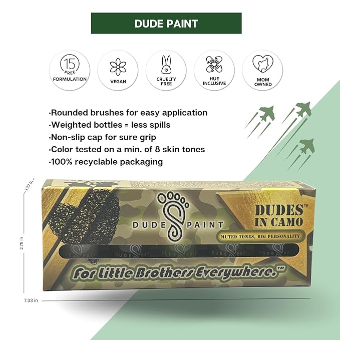 Dudes in Camo (Military/Camouflage) Nail Polish Set for Boys Pack of 5 Colors