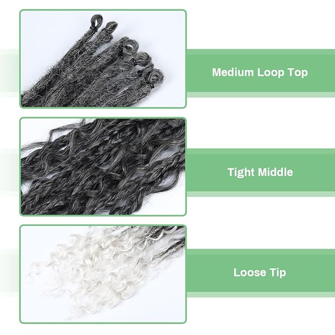 24 In 30 Strands Boho Dreadlock Extensions, Gray to White Synthetic Curly Dreads Extensions with Box Braid, 100% Handmade Dreads Hippie Style Dreadlocks for Woman