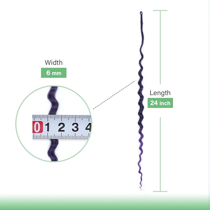 24 In 30 Strands Curly Dreadlock Extensions, Ombre Purple Synthetic Single Ended Dreads Extensions, 100% Handmade Dreads Hippie Style Dreadlocks for Woman