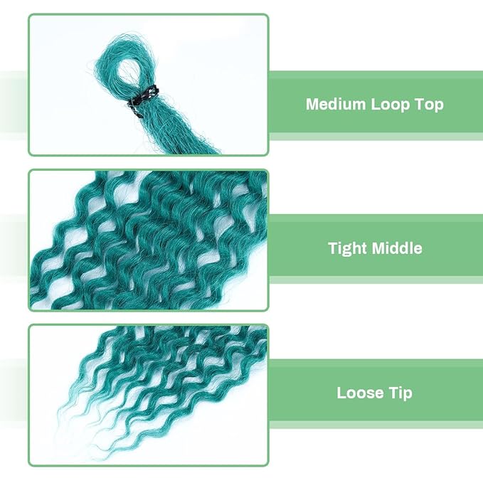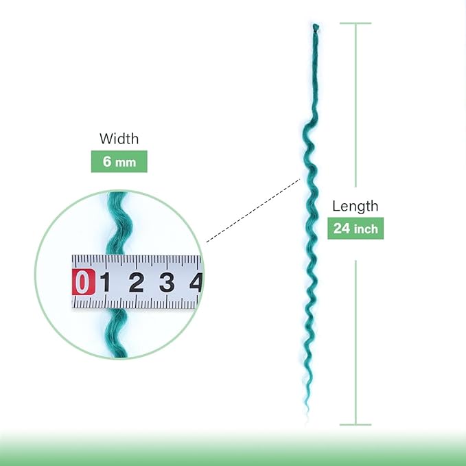 24 In 30 Strands Curly Dreadlock Extensions, Castleton Green Synthetic Single Ended Dreads Extensions, 100% Handmade Dreads Hippie Style Dreadlocks for Woman