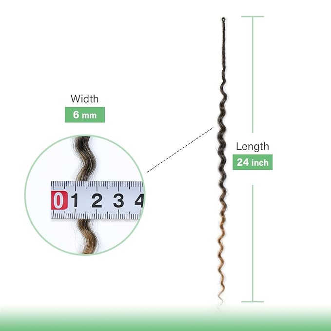 24 In 30 Strands Curly Dreadlock Extensions, Ombre Brown Synthetic Single Ended Dreads Extensions, 100% Handmade Dreads Hippie Style Dreadlocks for Woman