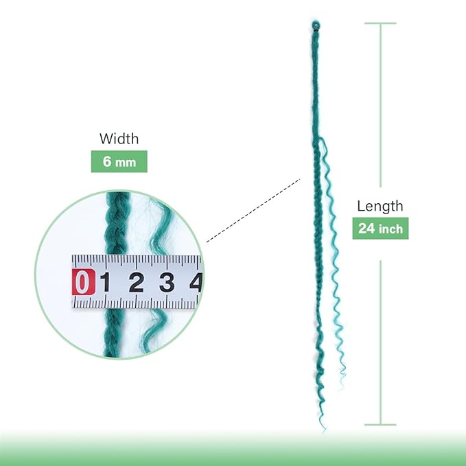 - 【Material】100% handmade high quality synthetic fiber castleton green dreadlock extensions, 0.6 cm wide, easy to install. Looks like human hair.
