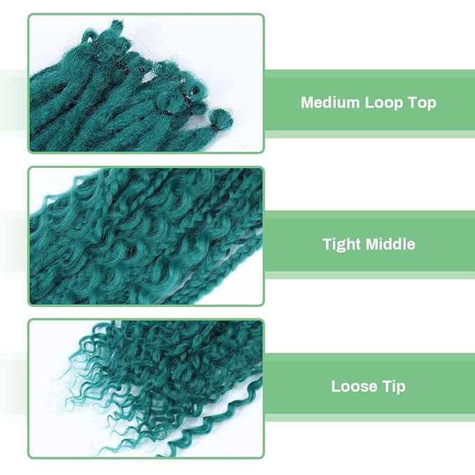 24 In 30 Strands Boho Braid Dreadlock Extensions, Castleton Green Synthetic Curly Dreads Extensions with Box Braid, 100% Handmade Dreads Hippie Style Dreadlocks for Woman