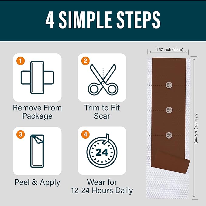 - Easy to Use: Soft, lightweight, and breathable silicone sheets for scars provide comfortable 24-hour wear without leaving residue. They can be easily cut to fit smaller scars, or use our scar tape roll for larger areas.