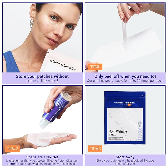 Wrinkles Schminkles Neck Wrinkle Patch, 1-Pack, Reusable Hypoallergenic Silicone Smoothing Pad for Neck Wrinkle Prevention + Patch Cleanser 2 oz, Clean Patches Without Breaking Down The Adhesive