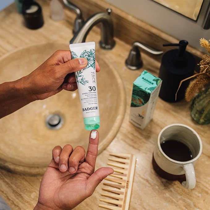 - SUSTAINABLE FACE SUNBLOCK: Badger's face lotion with spf is 80% organic, cruelty free, GMO free, gluten free, in a 50% PCR tube & made with 100% solar power in the USA by a women-owned family business