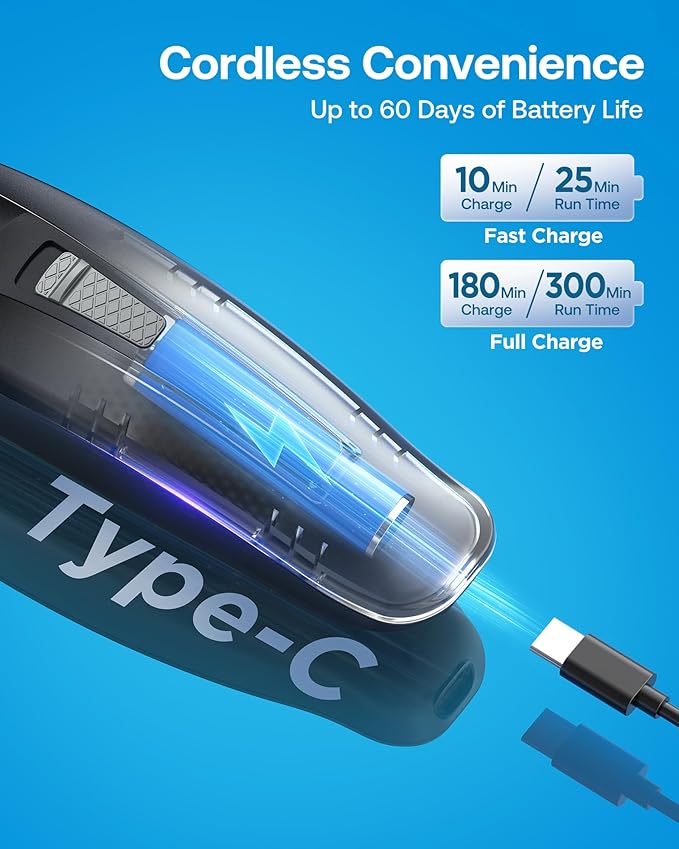 - THOUGHTFUL DESIGN - GLAKER wireless clipper prioritizes comfort and convenience. Its ABS casing effectively prevents wrist stiffness and aches for professional barbers and stylists. The ergonomic honeycomb textured design on the back of the handle ensures a non-slip and sweat-resistant grip, providing a strong, firm hold. Equipped with a 2.6 ft USB C charging cable, this haircut machine is easy to take on family or business trips, allowing you to enjoy a pleasant grooming experience on the go