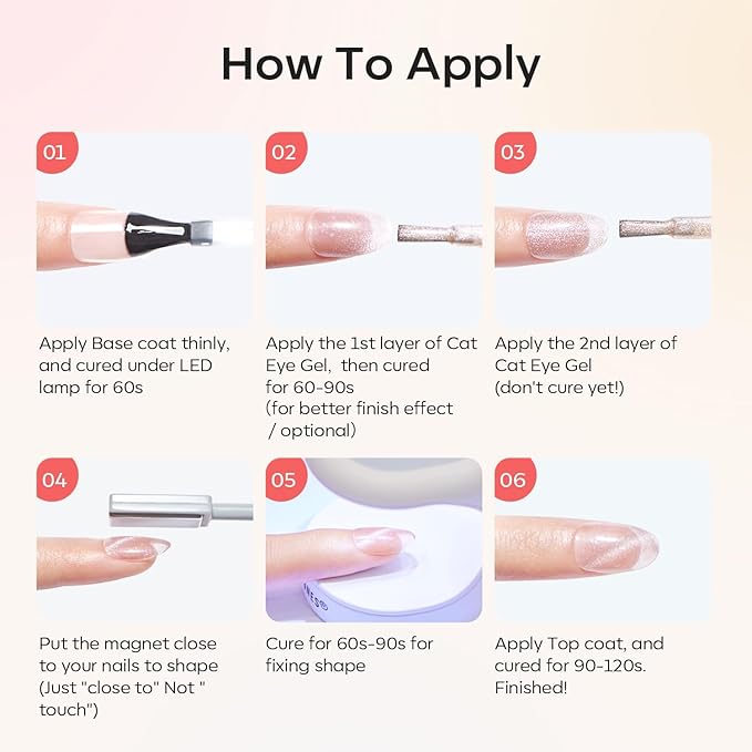 - Amazing Magnet Effects: The fun of rainbow nude cat eye nails is just how customizable they can be. All you need is a tiny magnet, which is included in the set as a gift. There are so many effects that can be created with this set. Easy and fast but still maintaining the professionalism of the product, keeping up with the fashion of the moment