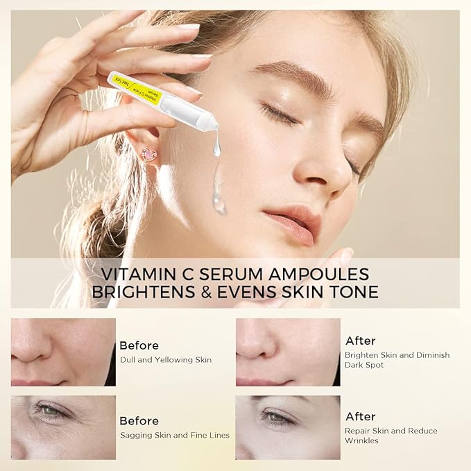 Brightening & Hydrating Face Serum with Vitamin C, Hyaluronic Acid, Glutathione, and Botanical Extracts,– Multi-Action Antioxidant, Barrier Repair & Anti-Aging Formula, 15 Pcs/Box Ampoules