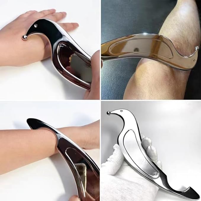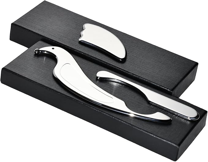 - ✅Professional Muscle Scraper Tool Physical Therapy: Ergonomic handle and interchangeable heads, easy to grip, provide a great hand feeling and a professional-level massage experience. The edges are featured with mirror polishing which look so pretty and easy to clean after using it.