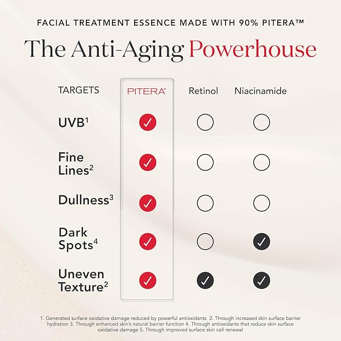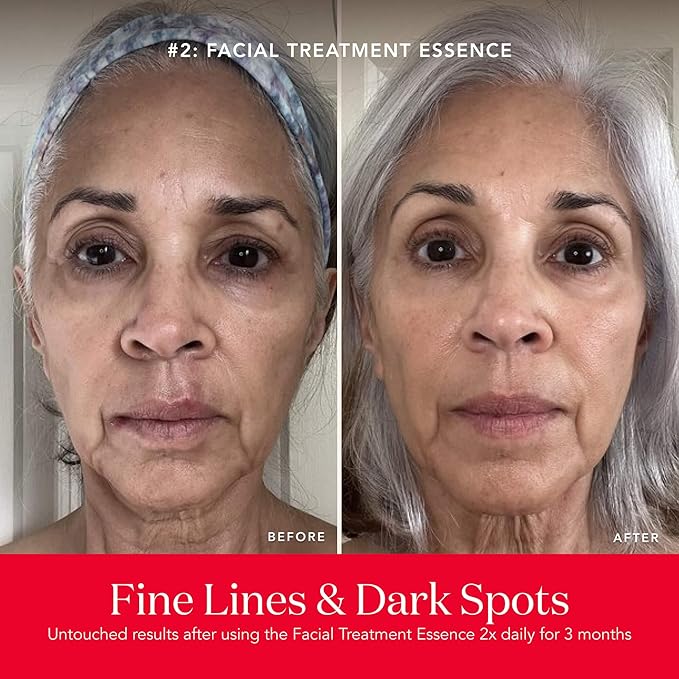 - Facial Treatment Essence & Ultraura Essence Serum - Our treatment essence is an anti aging must have, working to visible reduce stubborn skin damage and signs of aging. The essence serum helps to boost your skins radiance with a complex of Niacinamide, PITERA & Snow Lotus Extract.