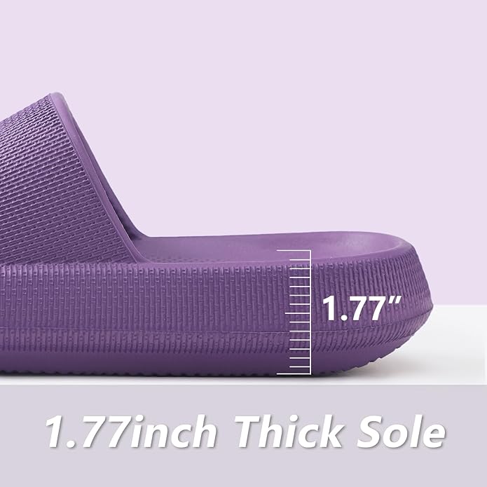 • ๐Ÿ‘๐“๐ก๐ข๐œ๐ค ๐’๐จ๐ฅ๐ž ๐ƒ๐ž๐ฌ๐ข๐ ๐ง: Built with 1.77 inch thick sole enhance cushioning.Cloud slippers can be worn all day long without any fatigue caused to your feet or ankle, allowing you to walk like a massage.