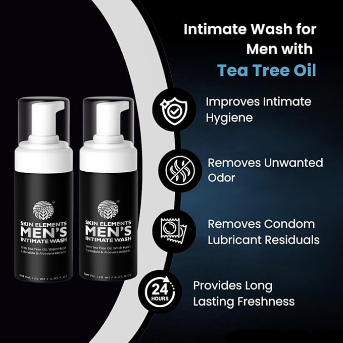 Skin Elements Intimate Wash for Men with Tea Tree Oil (Combo) | pH Balanced Foaming Hygiene Wash | Prevents Itching, Irritation & Bad Odor | 120 ml | Pack of 2|