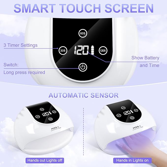 - Multi-functional Nail Lamp: INFILILA UV LED nail lamp with 36pcs LED lights, 3timer(30,60s,120s) for your choice, LCD screen, and smart sensor, more functional and more efficient. TIP: The switch requires a long press to use