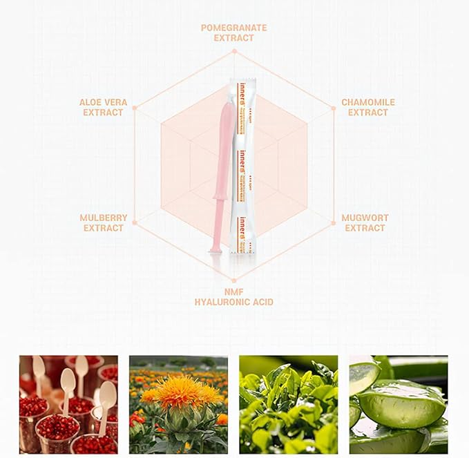 - ✅ Aloe Vera Leaf Juice, Artemisia Vulgaris extract, Pomegranate extract : Soothe, hydrate, and restore the intimate area.