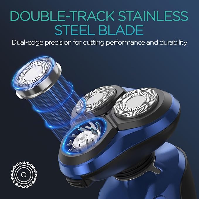 - EFFECTIVE& CLOSE SHAVE - 3D Floating rotary shaver head automatically adapts to the contours of your face and neck bringing you an effective and smooth shaving experience. Moreover, the self-sharpening blades designed for durability, which can save your time to change the blade.
