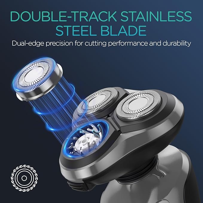 - EFFECTIVE& CLOSE SHAVE - 3D Floating rotary shaver head automatically adapts to the contours of your face and neck bringing you an effective and smooth shaving experience. Moreover, the self-sharpening blades designed for durability, which can save your time to change the blade.
