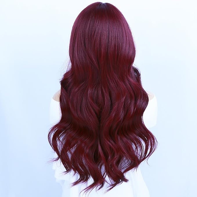 BERON Burgundy Wigs Long Wavy Wig for Women Curly Wine Red Heat Resistant Synthetic Hair Wigs for Cosplay Party Daily or Use