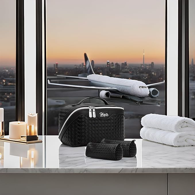 - 3 Piece Makeup Bag Set: This womens makeup bag for vacation comes with two small cosmetic bag,which can organize your brush or other small things More easily.