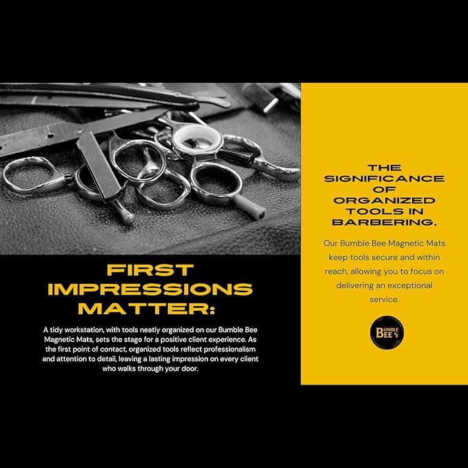 BUMBLE BEE Barber Equipment, Magnetic Barber Mat Non-Slip Heat Resistant Surface - Barber Mats for Clippers, Quick Access, Easy Cleaning - Barber Station Mat and Barber Organizer Station. (Large)