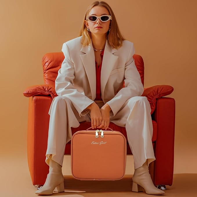 - 【Premium Material】The vanity case is made of delicate synthetic leather surface, waterproof and wear-resistant, ergonomic handle, electroplated light gold zipper is anti-corrosion, not easy to fade.