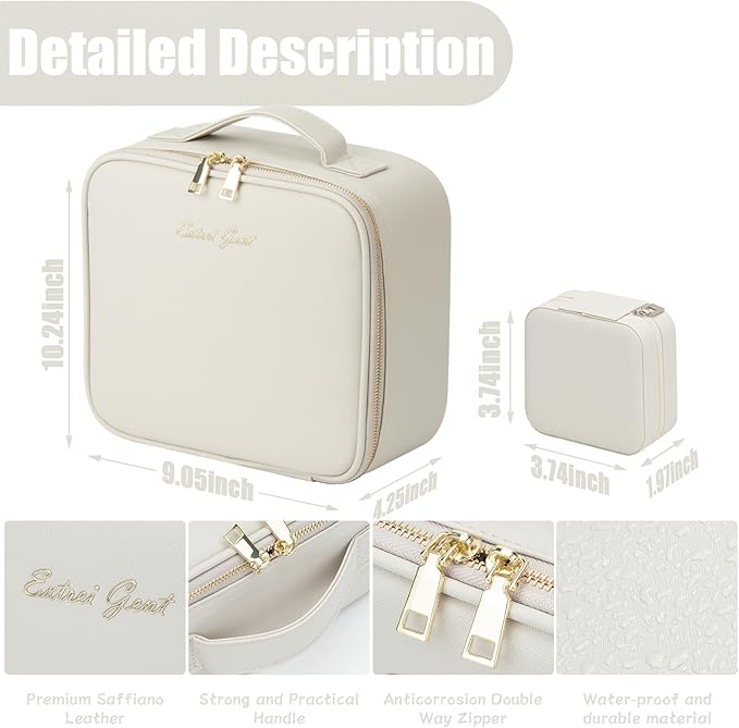 - 【Multi-purpose】This cosmetic case is just right for you to carry when you go out, whether you are going on a trip, a business trip or visiting your parents, the cosmetic case is your good partner, it is also a good gift choice, we also deliver one more jewelry Box for storing your jewelry while traveling.