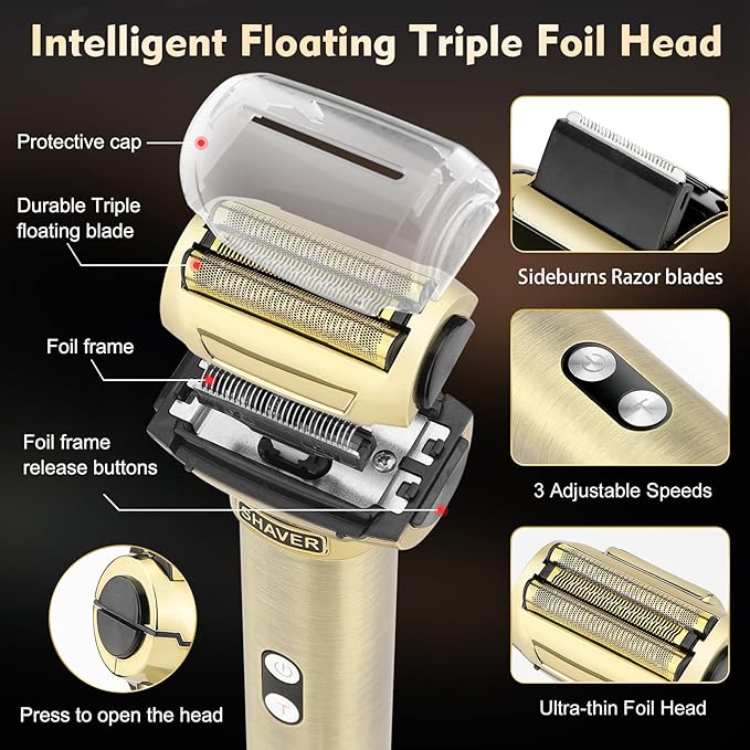 - [Intelligent Floating Triple Foil Head] - Dumite Electric shavers razor comes with with smart triple float shaving head with thin and smooth foil blade mesh that closely follow the contours of the face,bring you with a comfortable quick and clean shave. Floating design blade heads increase the shaving area and fit well to the chin, and other difficult-to-shave parts. Razor body with sideburn blades for your every need.