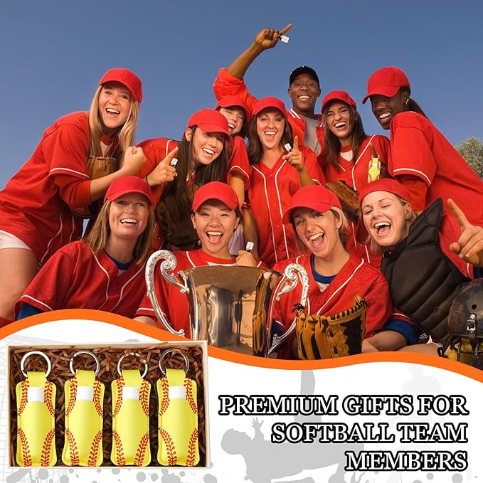 - Portable and Lightweight: the lip balm measures about 2.62 inches/ 6.65 cm high with lid, about 0.65 inches/ 1.65 cm in diameter; Softball keychains are around 3.94 x 1.5 inches/ 10 x 3.8 cm, portable and lightweight, so you can put them into your handbags, makeup bags, suitcase and more