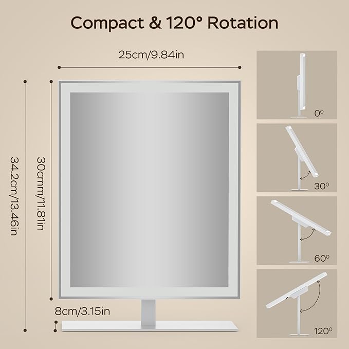 - 【12-Month Warranty】: 12 inch Light up mirror for makeup is slim, so doesn’t take up much room on the desktop and it is large enough to see your entire face while putting on makeup unlike the round mirrors on a stand. Enjoy a 12-month warranty! If you have any problem, please notify us, we will respond within 24 hours.