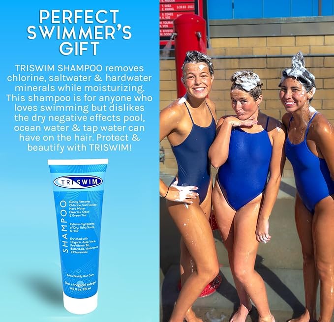 - 【GENTLY REMOVE CHLORINE AND OTHER IMPURITIES】TRISWIM swimmer's shampoo are specially formulated to effectively remove chlorine, salt water, hard water minerals, and other impurities from your hair. Say goodbye to green tinted hair and hello to clean, healthy locks.