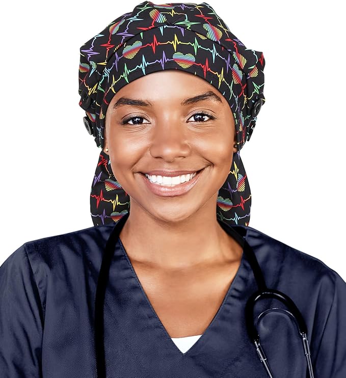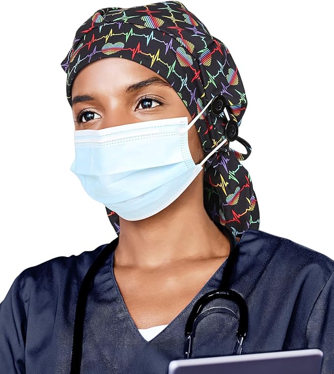 - Adjustable Elastic Band with Ponytail Pouch Design -- the ponytail pouch helps you adjust your hair,makes you look professional and brisk.Ribbons over the pony-pouch provide extra security for keeping hair in place,maintain your hairstyle during work and keep your head clean&neat.Bouffant cap for long hair fit Large or Small Head, more adorable to wear. They are natural, breathable and very comfortable to wear all day;Keeps your forehead dry and comfortable