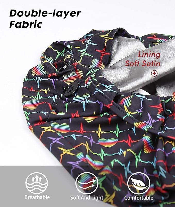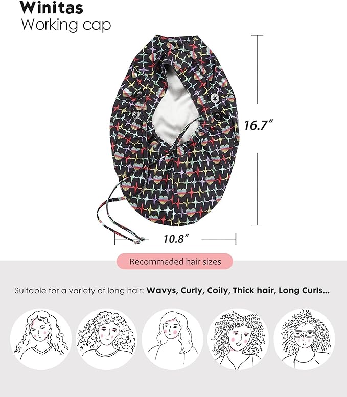 - DESIGNED FOR ALL TYPES OF HAIR🍀Silky satin lined work caps was created for all types long hair:Dreadlocks,Long Braids,Frizzy,Flyaway,Straight.Soft satin helps retain the moisture in your hair, eliminates breakage while working. Keeps your hairstyle fresh and frizz free. Prevents tangles, breakage, and dry damaged hair during work