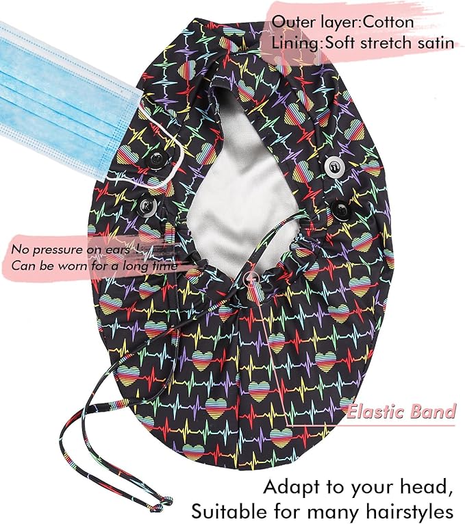 - Available for ALL Year-- Our working cap will be cool in summer and warm in winter for a long time wearing.Bouffant cap is made from 100% cotton fabric with 95% viscose 5% Spandex sweatband.It is light, comfortable, breathable and fast dry. It is friendly for worker, Add it into the cart now.It is a lovely cap for women to protect hair.